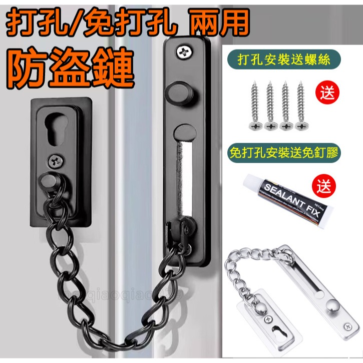 內容物:門鍊鎖主體、免釘膠、螺絲x4