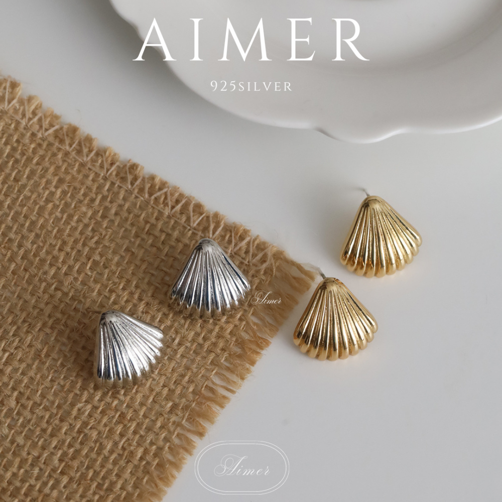 ⟪Aimer ac》韓系S925純銀 貝殼紋理耳環 金屬扇型耳環 |金、銀色|24年新款輕奢飾品【台灣現貨+預購】