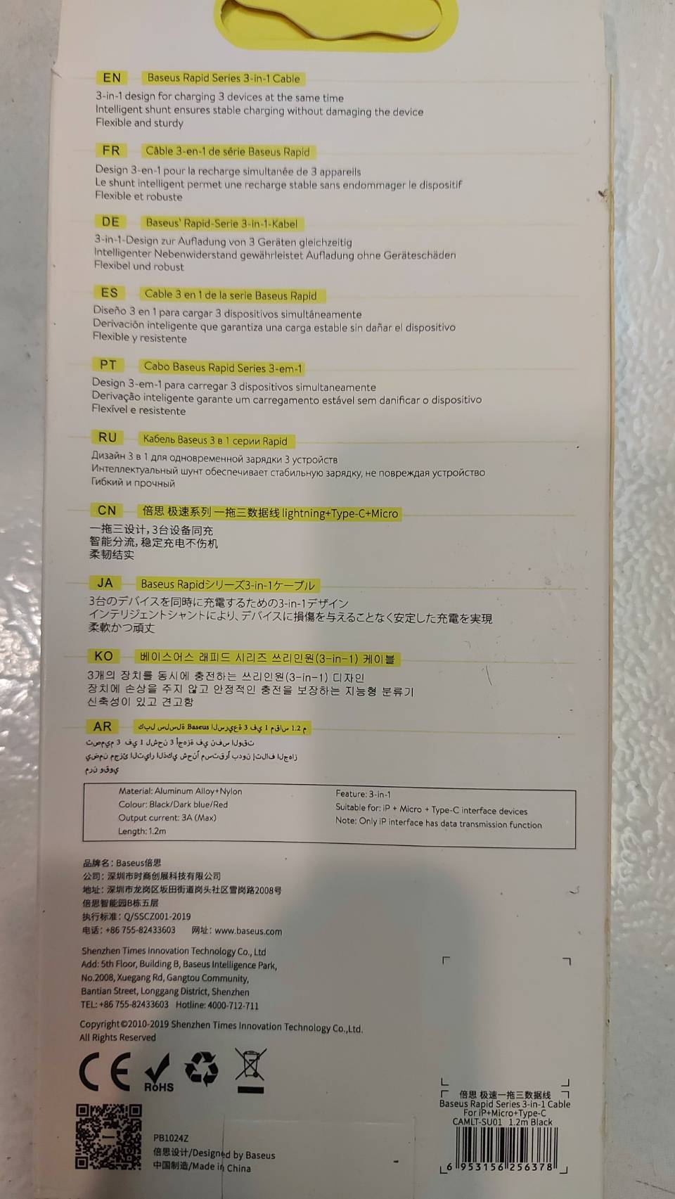 倍思一拖三充電線 是一.二年前產品尾貨 品質不錯 最高可達2.4 到 3 A(max)支援蘋果傳輸 售完為止