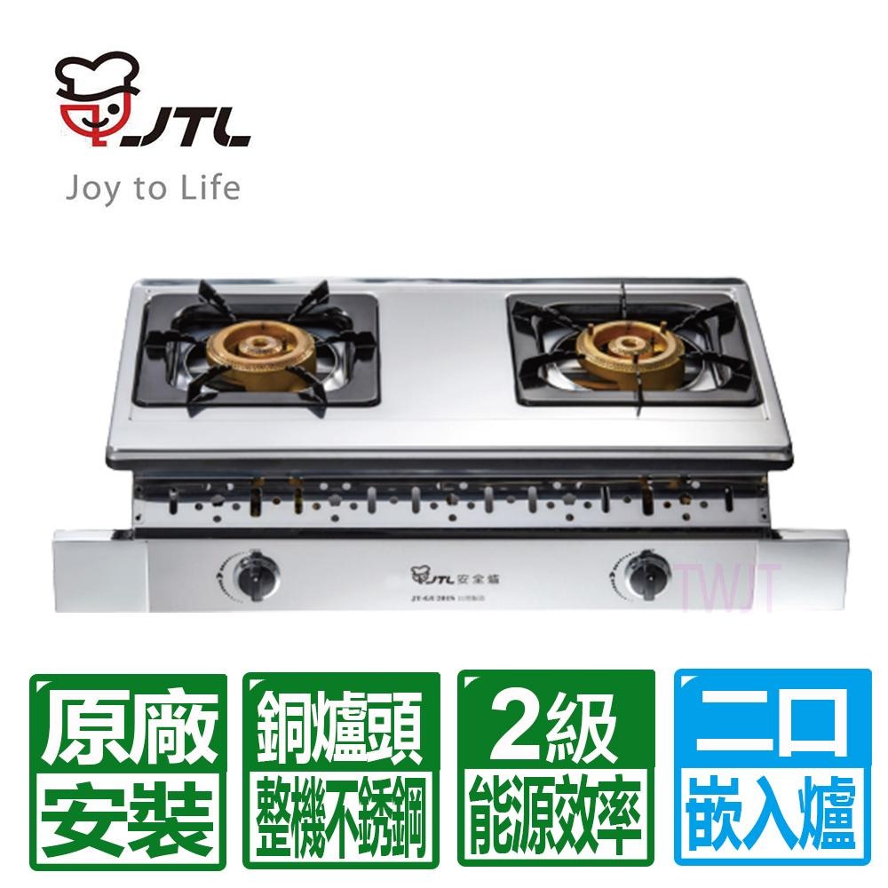 【喜特麗】全銅爐頭全機不鏽鋼雙口嵌入爐 效能2級JT-GU201S(NG1)天然瓦斯專用