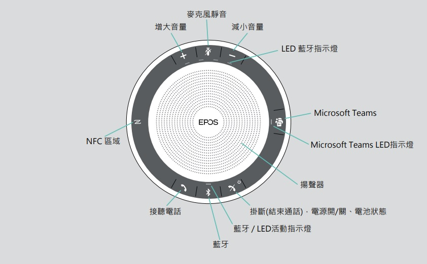 EPOS EXPAND 30是一款便攜式揚聲器,專為移動商務人士設計,適用於PC/軟電話和手機或平板電腦的個人及小型會議使用。