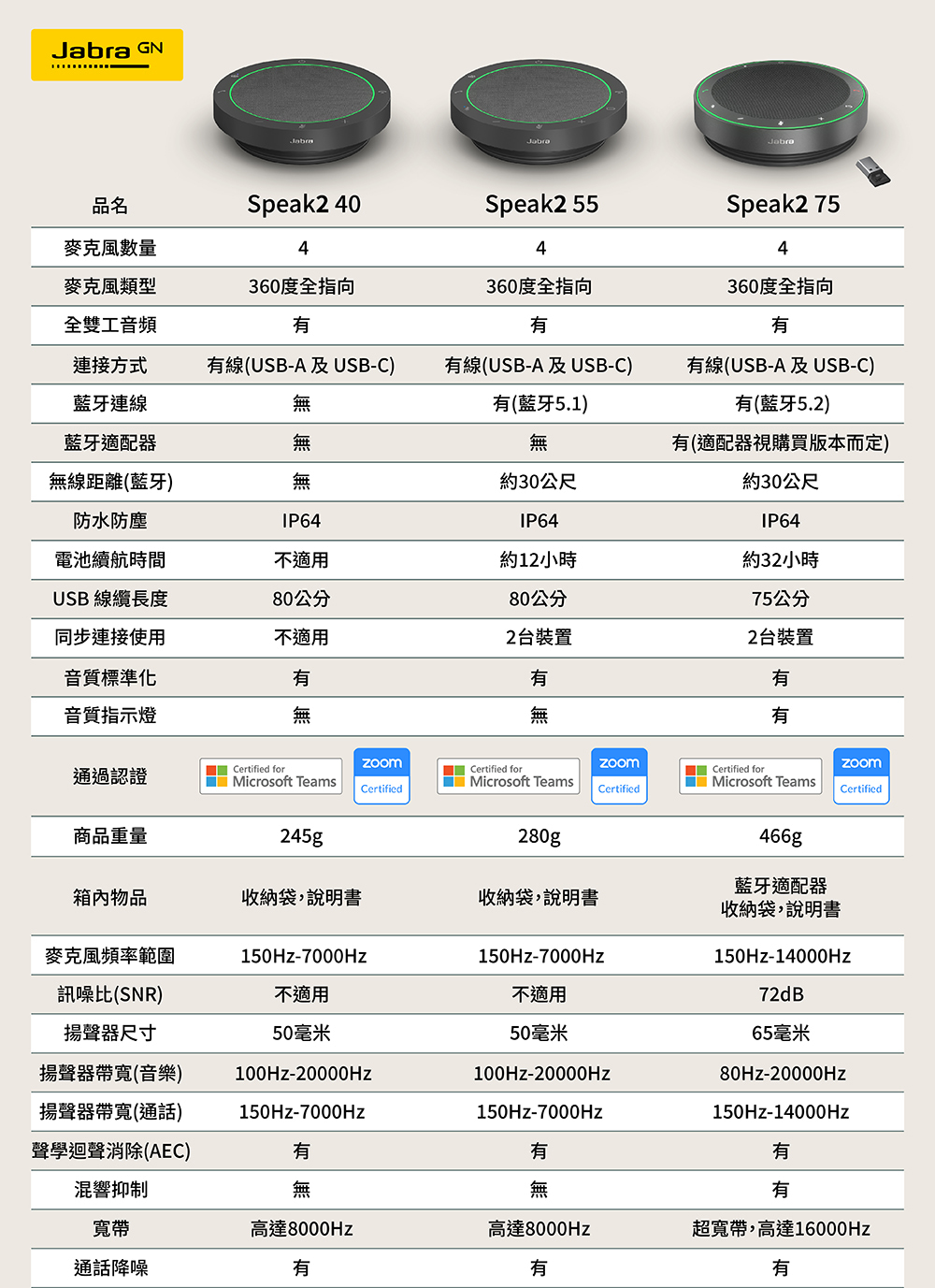 「捷泓科技」Jabra speak2 40 音訊設備 ‧支援 USB 連接 可攜式全雙工會議揚聲器