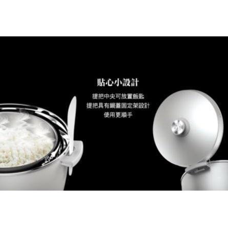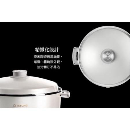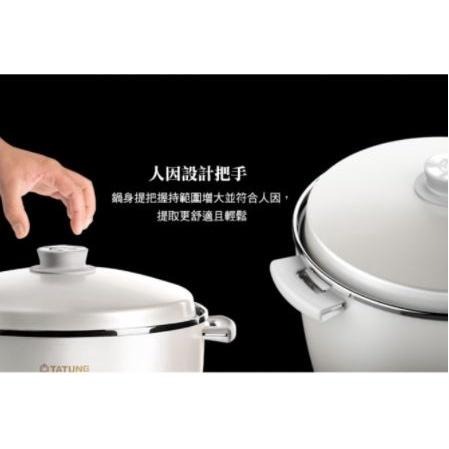 【商品特色】: (1) 首創兩段式溫控,旺火快煮,微火細燉。 (2) 內/外鍋蓋、內/外鍋、蒸盤 均為SUS 304不鏽鋼材質。 (3) 304不鏽鋼1MM厚內鍋,可直火加熱,增加提把方便使用。 (4) 專屬多用途蒸盤,可放入內鍋同時蒸煮。 (5) 奈米陶瓷烤漆鍋蓋, 油污髒汙不易沾。 (6) 珍珠白霧面烤漆外觀,符合現代居家美學。 (7) 雙重被覆電源線,雙重安全保護。 (8) 煮飯/粥、蒸、滷、燉多用途。 (9) 11人份電鍋,最大煮飯量:1.98L 【商品規格】: ◎型號:TAC-11V-MW ◎產品尺寸:343 x 312 x 258 mm (高寬深cm) ◎淨重:6Kg ◎額定輸入:110V ◎消耗功率:900W ◎保溫功率:40W ◆收貨須知: ※收貨時務必使用手機錄影存證,若商品外包裝有明顯的摔傷、撞擊等痕跡,請直接向物流拒收,千萬不要簽收!並通知我們重新發貨。 ※簽收以後責任就歸屬於收件者了,我方也難以向物流索賠,您也沒有證據證明不是您造成的,請各位好買家務必要注意! ◆退貨須知: ※購買及拆封請注意:商品一經拆封*使用*就會酌收「整新費」。(價格以實際報價為主) ※鑑賞期非試用期,您可以拆封檢查商品的完整性及功能之正常,但不可進行會留下使用痕跡之測試。 ◆店家聲明: ※產品顏色可能會因網頁呈現與拍攝關係產生色差,圖片僅供參考,商品依實際供貨樣式為準。 ※產品文案若有變動敬請參照實際商品為準。 ※欲參加原廠相關活動(例如:回函活動),如遇逾期或未依活動內容申請,我方不負擔保責任。 ※商品售價因原廠端隨時調整,價格變價亦有輸入價格風險,若與市價平均價格落差過大(超過20%以上),本公司保留訂單接受與否權益。