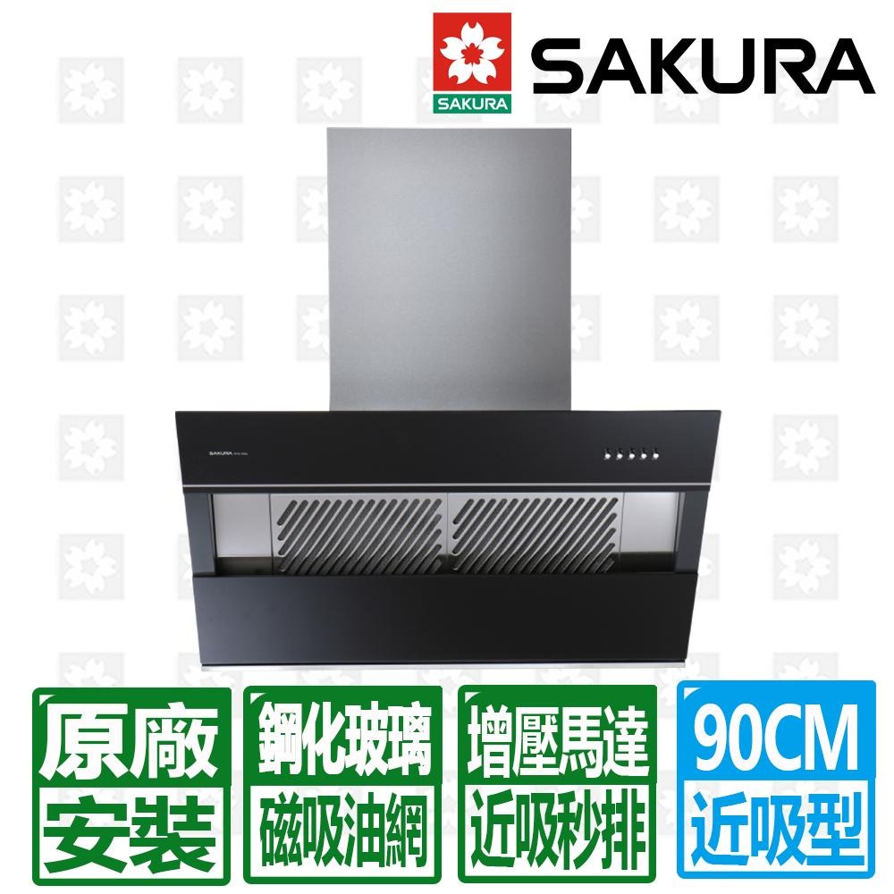 【SAKURA 櫻花】80CM/90CM近吸鋼化黑色鏡面玻璃直吸增壓除油煙機 R-7610原廠基本安裝