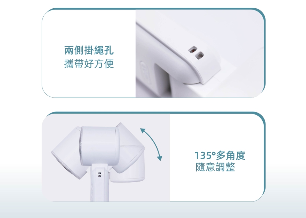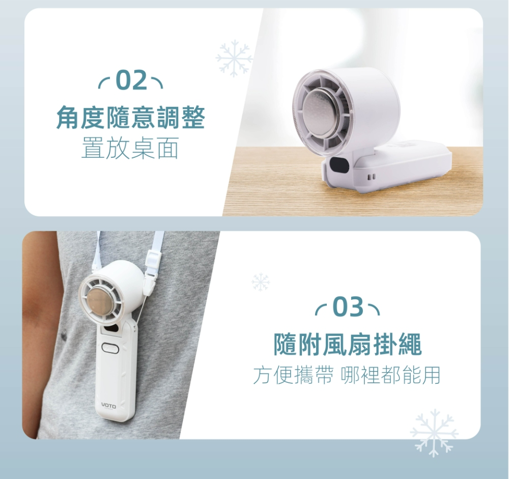 ✸風扇可折角度,脖掛/手持/置放桌面怎麼吹都OK