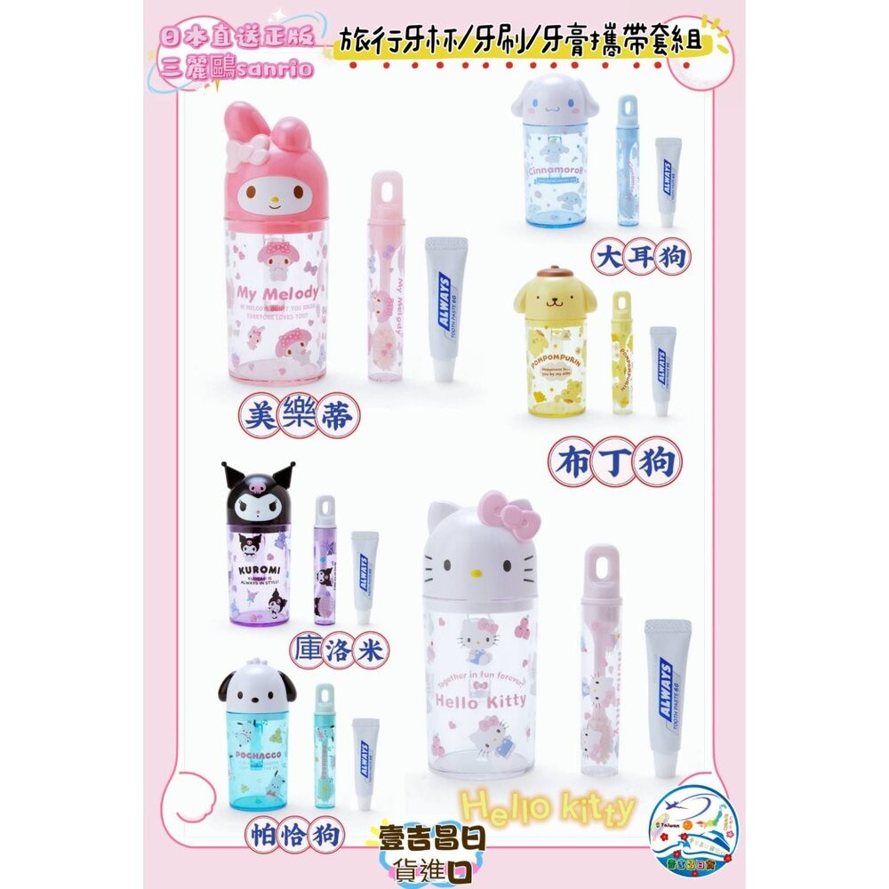商品名稱:壹吉昌商城 日本正版 Sanrio 三麗鷗 原廠 攜帶式牙刷組 日本空運直送 兒童漱口杯旅行組 牙刷牙膏杯組 平台代開發票