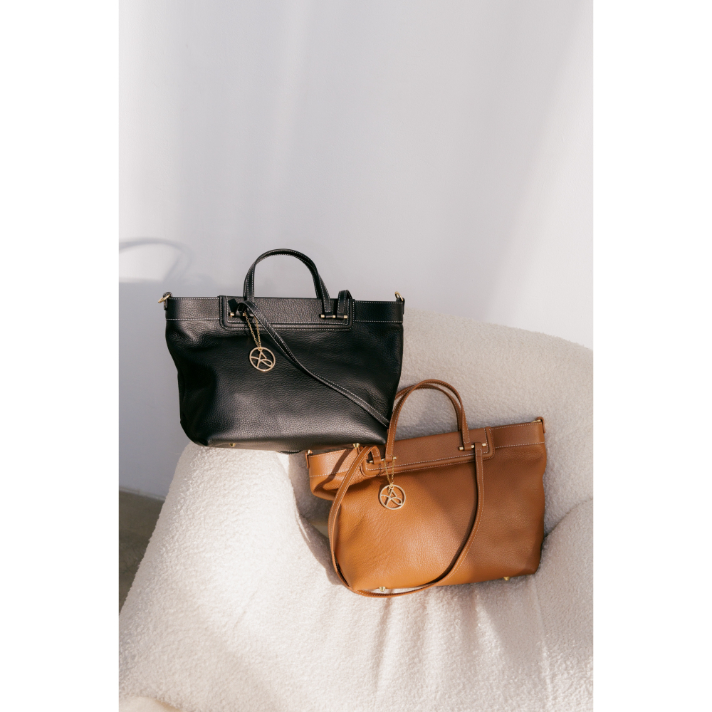 義大利品牌自訂系列-手工立體撞色雙車線荔枝真皮托特兩用包