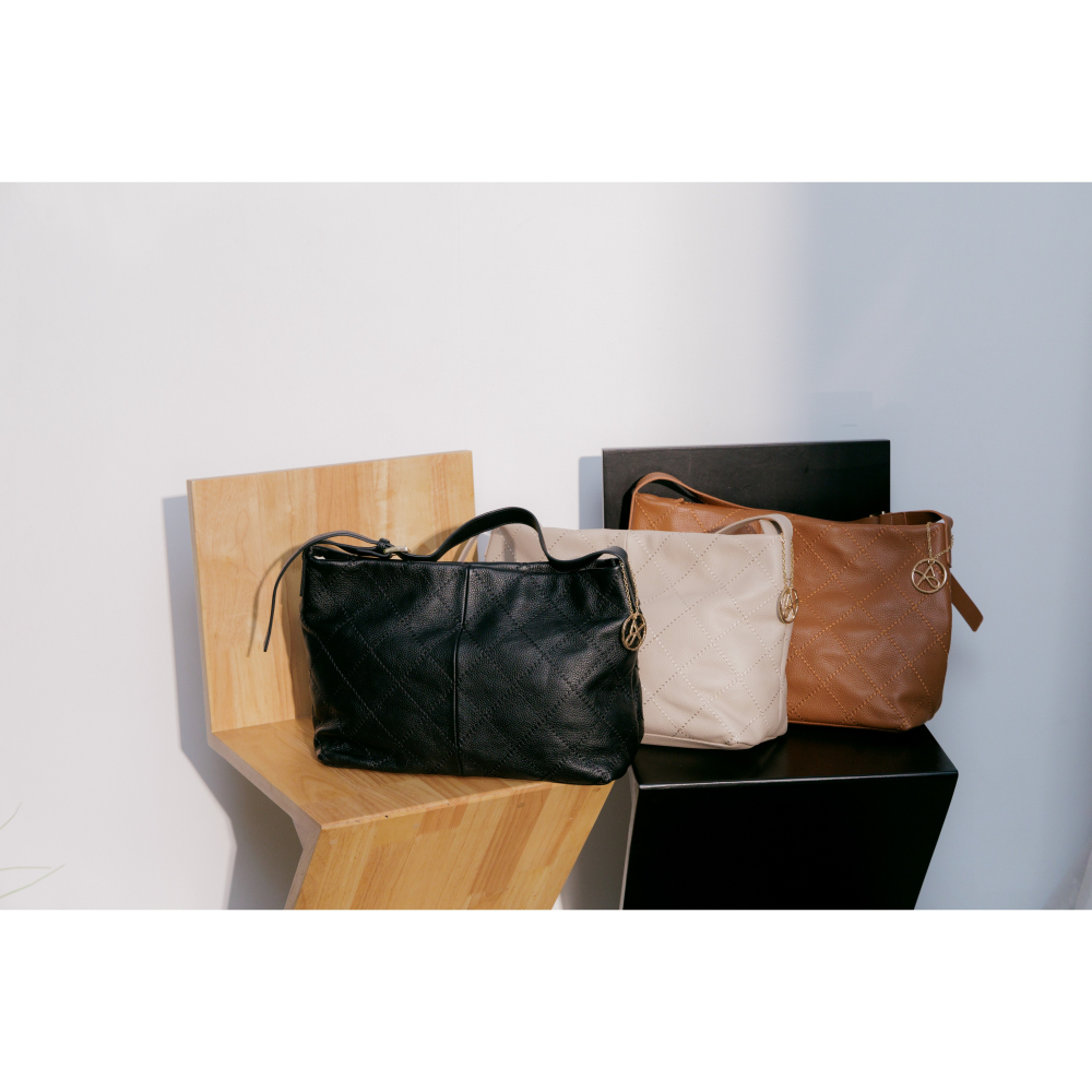 義大利品牌自訂系列-精緻手工車線菱格紋單肩金釦真皮垂墜萬用大包