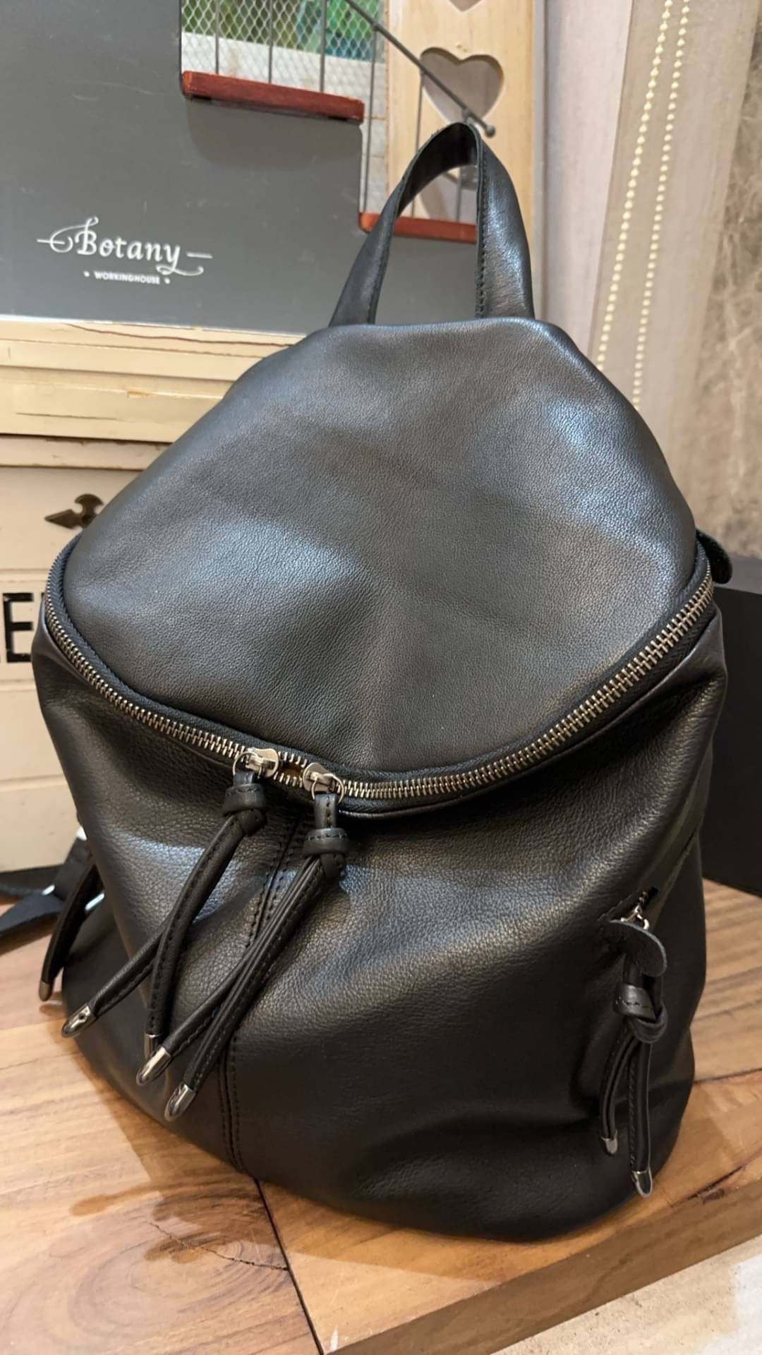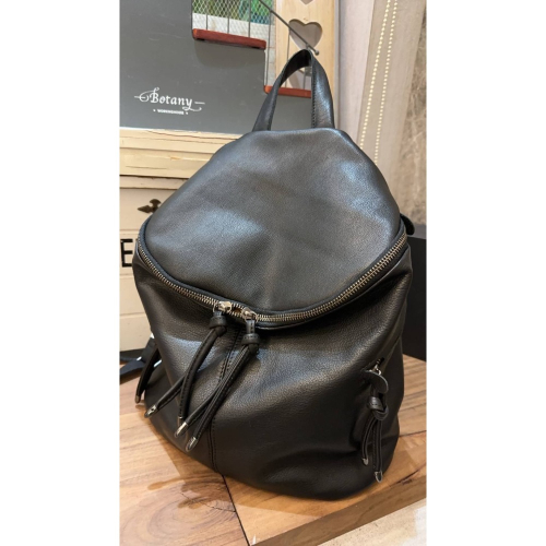 23686牛皮系列手工半圓拉鍊旁雙口袋後背包