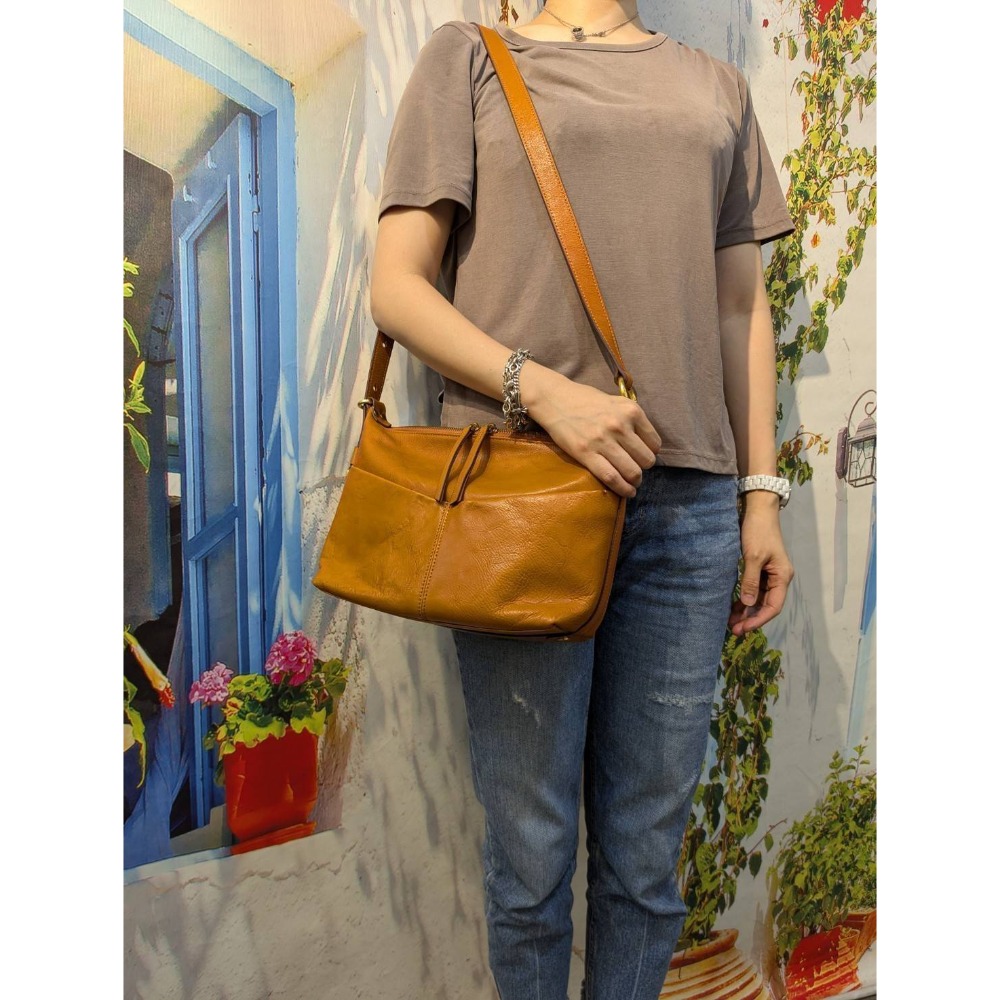 簡約水餃包身背重後線條更加優美,尤其側邊的帶扣五金小裝飾,不僅是點綴更添時尚精緻感,尤其採義大利小牛皮訂制,皮革紋路復古也較具光澤感,而且較耐用且越使用越漂亮,前雙拉錬插袋可放手機/短夾,拉錬主袋開口及容量也够大,內袋還有實用中拉錬隔層,可輕鬆置放長夾/小水瓶/折疊傘,喜愛個性休閒有質感的女性,一定不可錯過~義大利小牛皮雙面造型斜背包