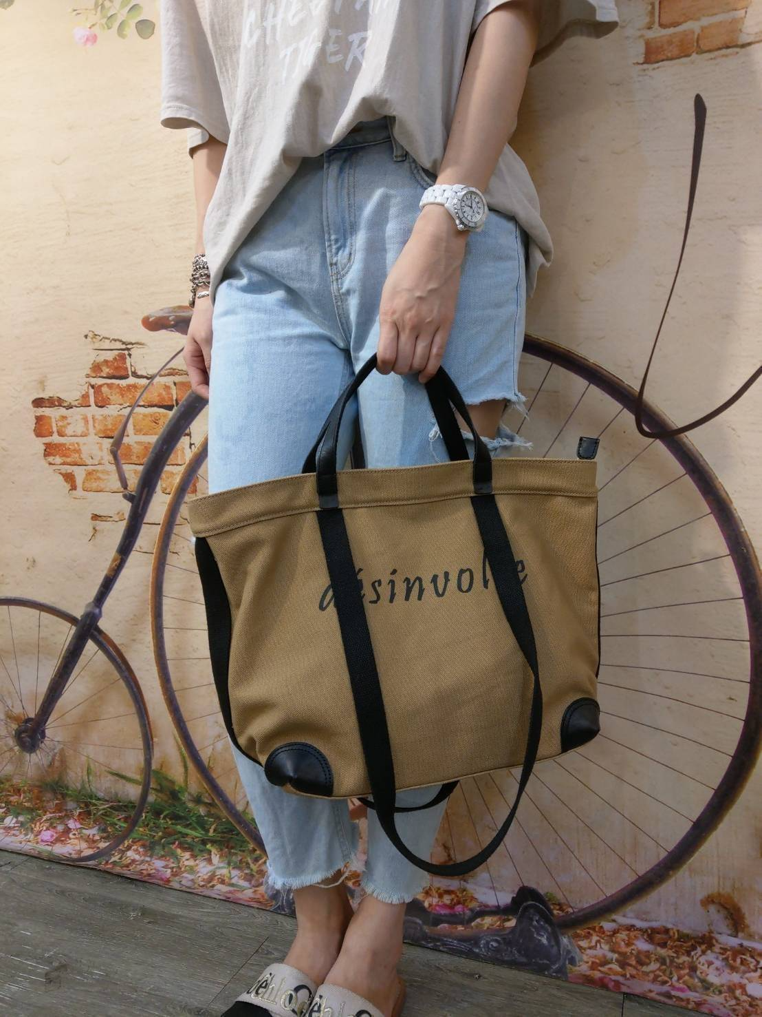韓國字母牛仔帆布配小牛皮手提中碼購物袋(中碼),今年非常流行的休閒文青風,最新簡約又休閒有個性的中碼購物袋,採進口牛仔帆布相當厚實有質感,搭配進口小牛皮訂制,不僅質感超好又耐用,前也採最流行時尚字母設計,實用手提把及肩背二用功能,非常有個性的休閒購物袋,內袋空間很大可輕易置放A4文件/筆電,很適合有品味的女性/上班使用~韓國牛仔帆布配小牛皮中碼購物袋