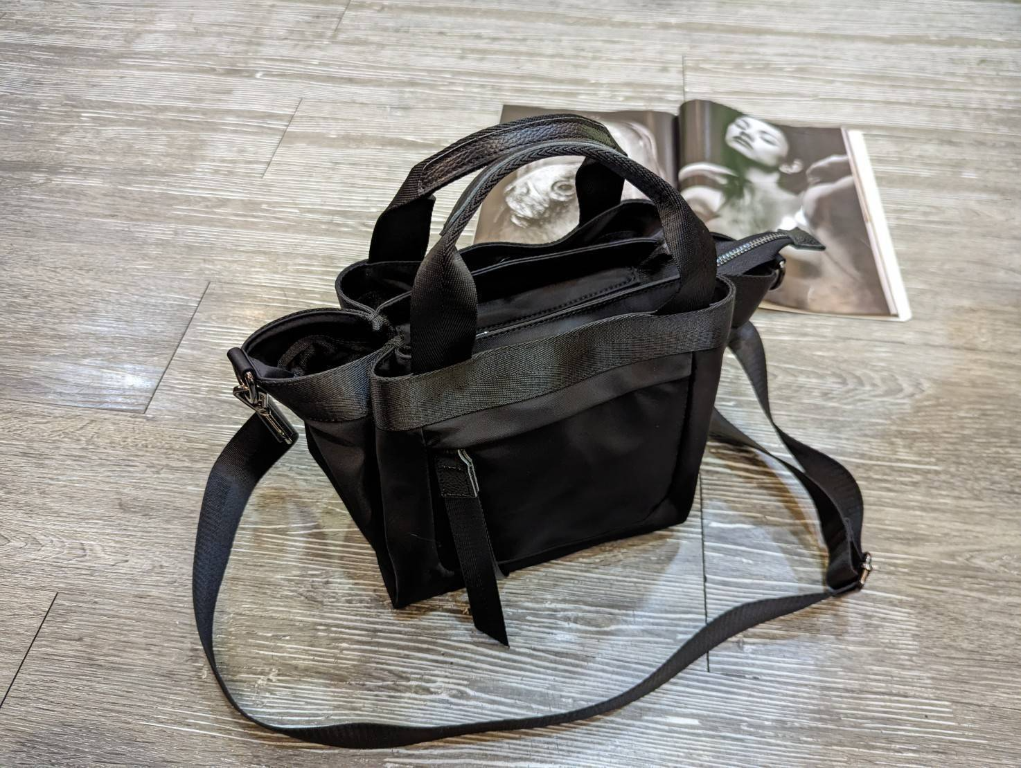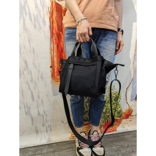 防水布經典多層手提袋(新版),它是款非常流行又經典的多層次手提方包,最新前多了實用拉錬口袋,並搭配大織帶皮拉設計,不僅較具設計感也方便開拉,採最新防水布所訂制,休閒又輕盈好清潔,三層式內袋設計非常實用,前後吸扣口袋可置放手機/小水瓶等,主袋容量空間也非常大,不管長夾/保溫瓶/折疊傘通通可放下(左右還有小插袋},很適合平常或外出旅遊使用~簡約休閒二用手提布包