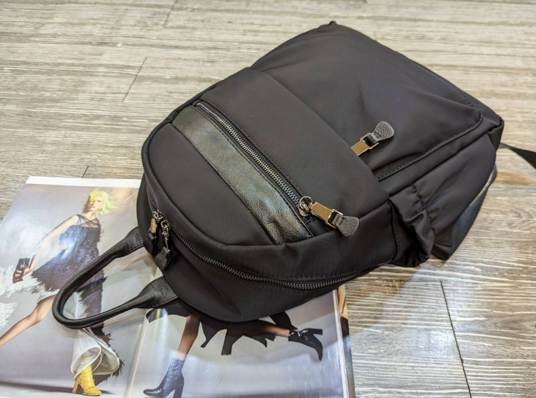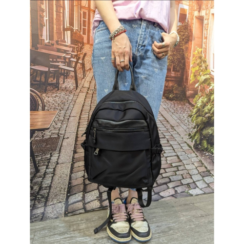 New 韓國防水布配小牛皮圓弧造型休閒後背包,它是款時尚休閒又有質感後背包,簡約圓弧造型前搭配小牛皮點綴,並結合精緻五金皮拉,時尚休閒又非常輕盈,尤其採進口防水布訂制,密度高表面也較細緻,搭配小牛皮更有質感且耐用,前後共三層拉鍊可放手機/中夾/零錢包,背面拉錬暗袋可放手機,左右還有束口插袋可放小水瓶,圓弧大拉鍊內袋設計,圓弧大拉錬開口容量空間也够大,就連A4大小文件都可置放,時尚休閒有質感的後背包~