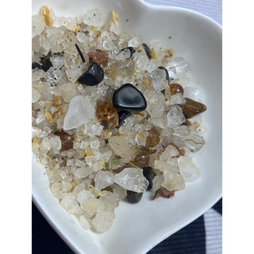 「想把送窮能量放大,豐盛海鹽搭配水晶: