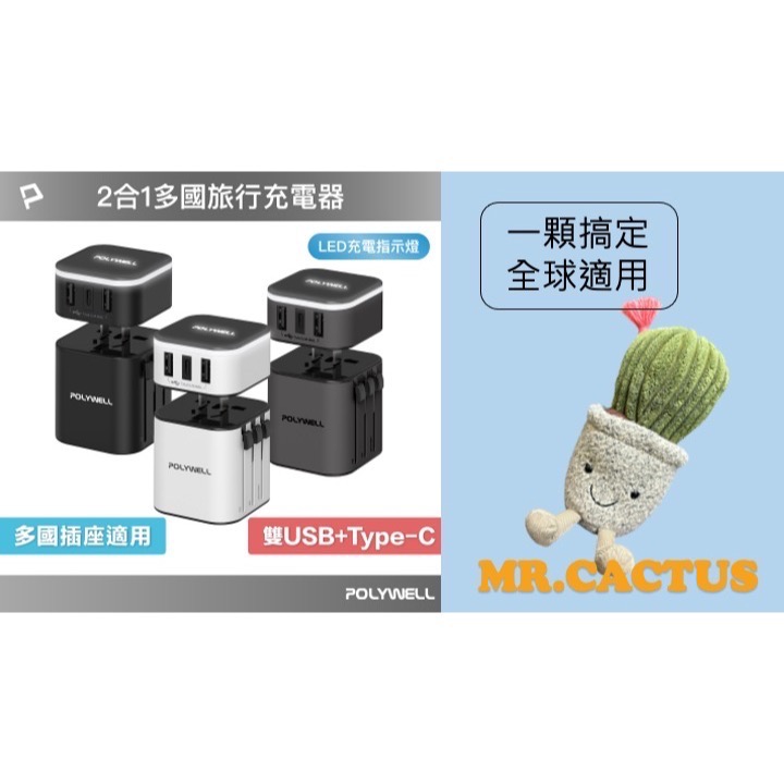 - 充電器有2孔USB和最新Type-C埠, 可以為您旅遊設備一次同時充電