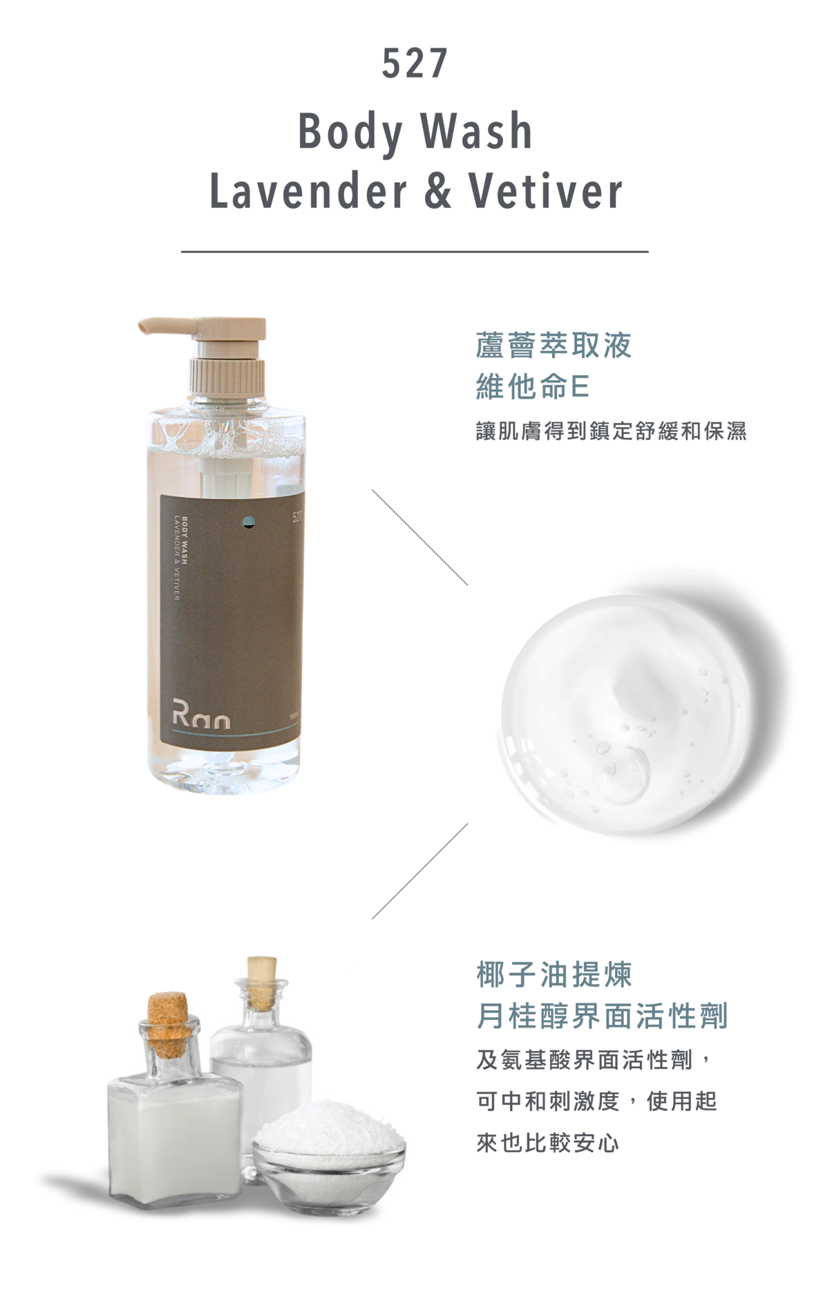 •PH 值:中性偏弱酸,較親膚 •使用椰子油提煉月桂醇界面活性劑和氨基酸界面活性劑,可中和刺激度,使用起來也較溫和