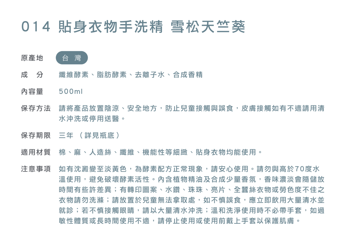 2. 品名:012 貼身衣物/細緻衣物手洗精