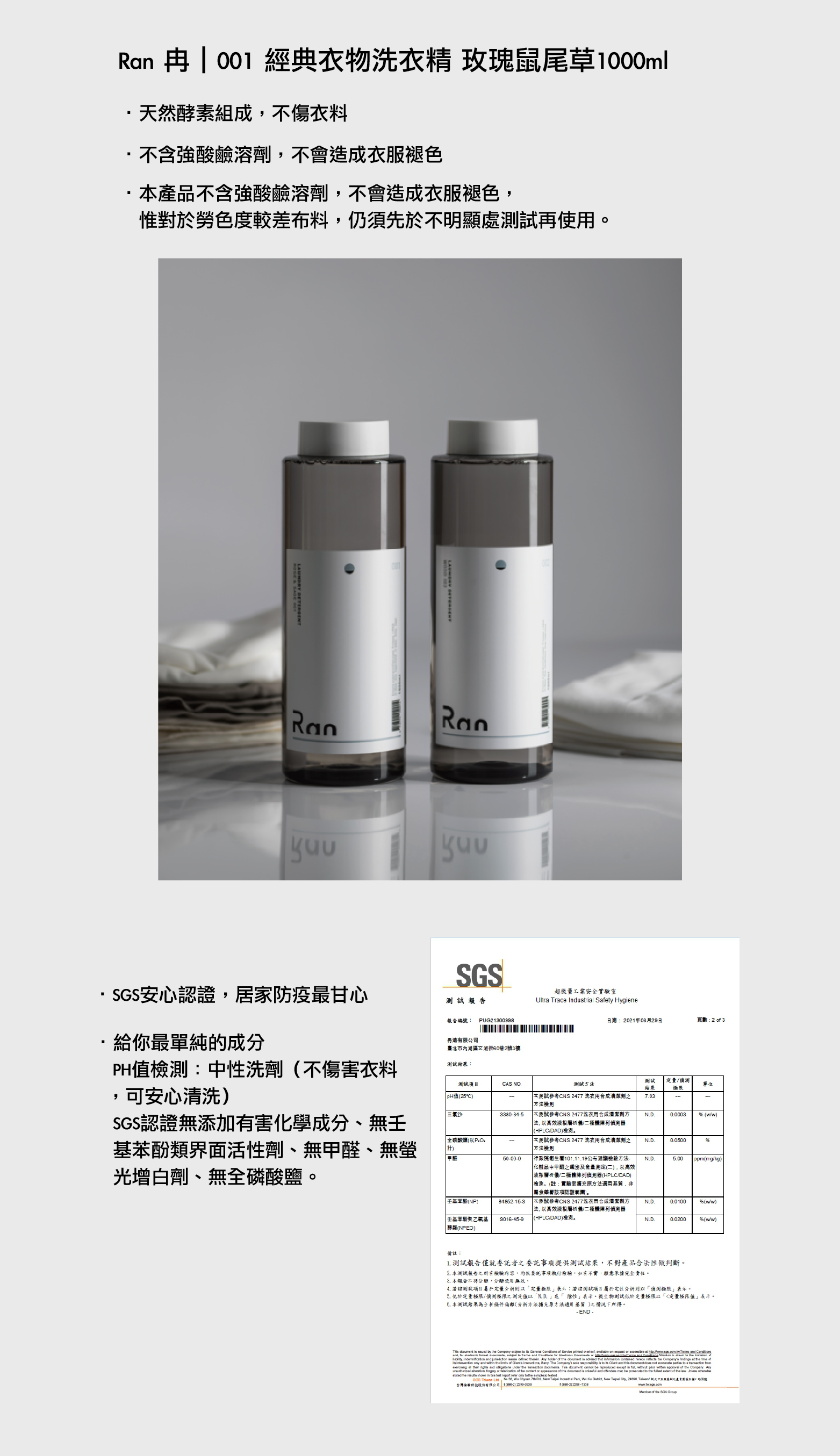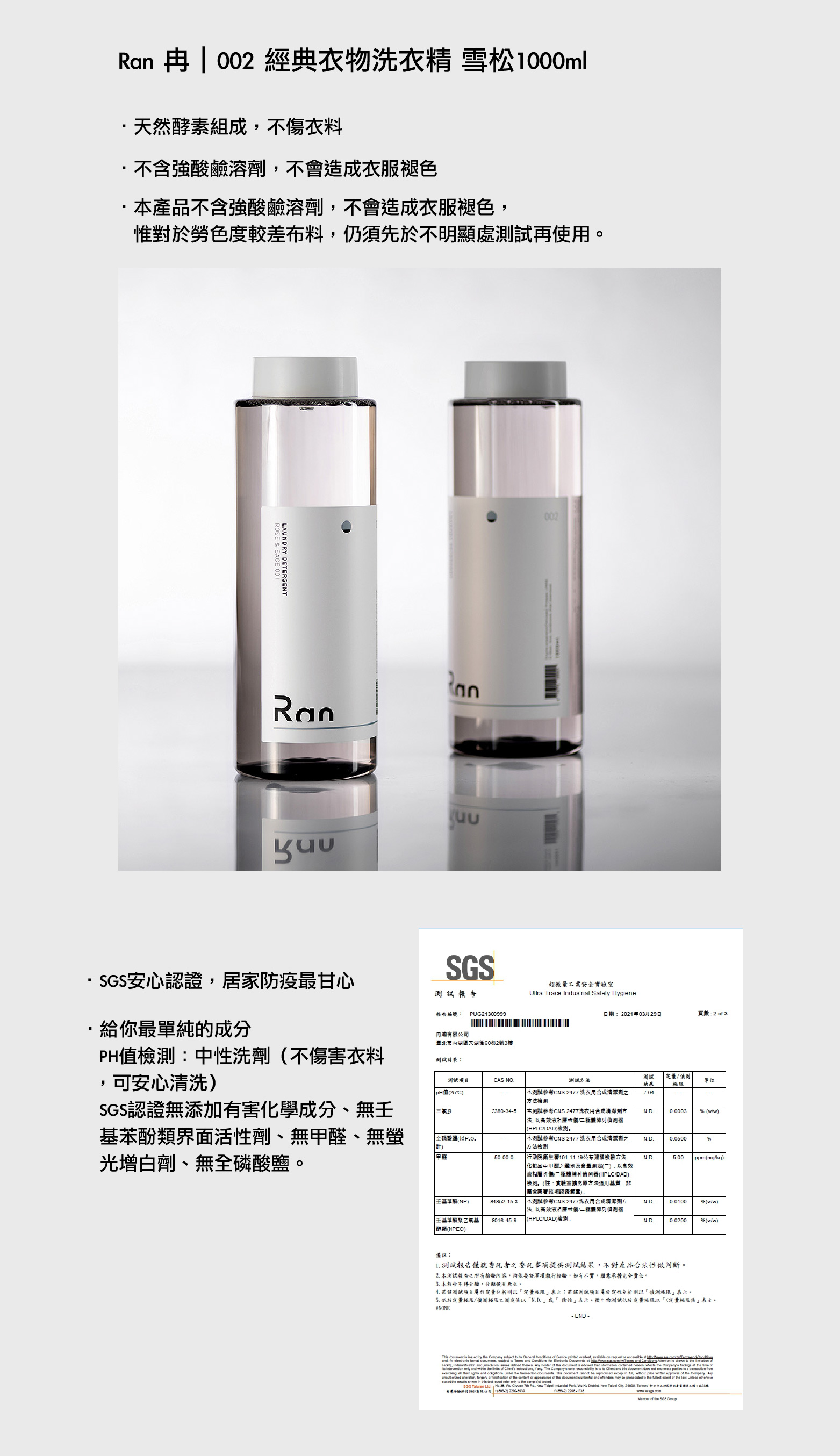 2. 品名:經典衣物洗衣精 001 玫瑰鼠尾草/002 雪松