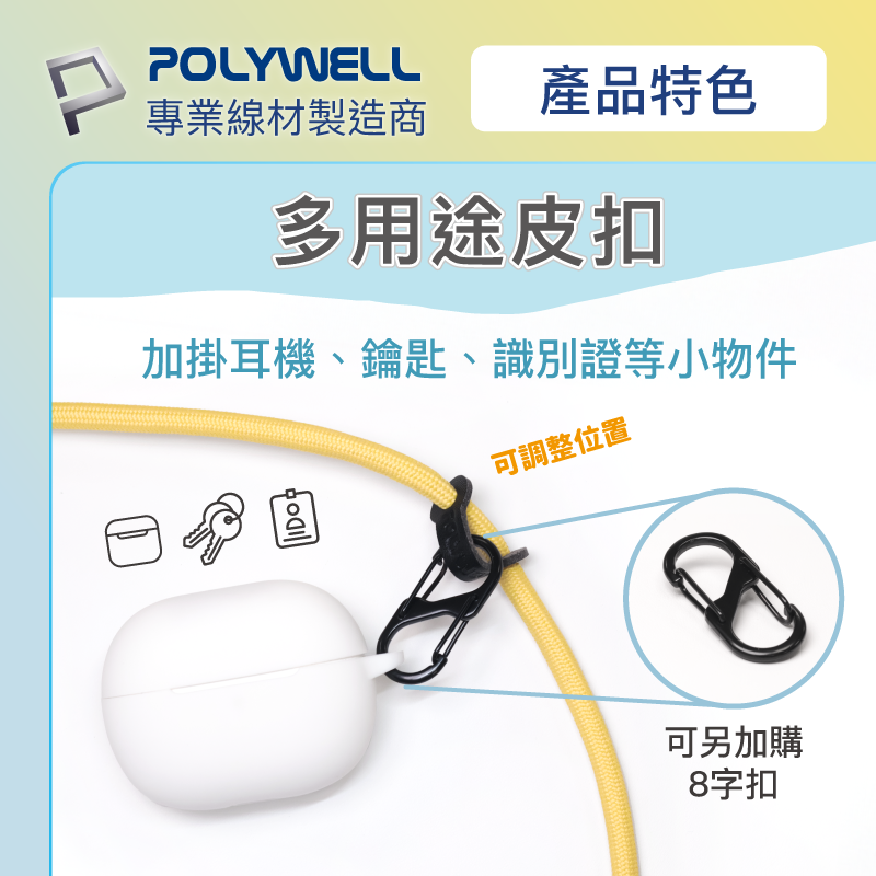 【手機掛繩】升級雙調節扣環, 不再有多餘的掛繩左右搖擺; 長度可自由調整, 可頸掛側背, 配合個人使用習慣