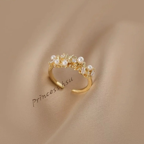 不規則珍珠鑲鑽戒指,款式可調整戒圍