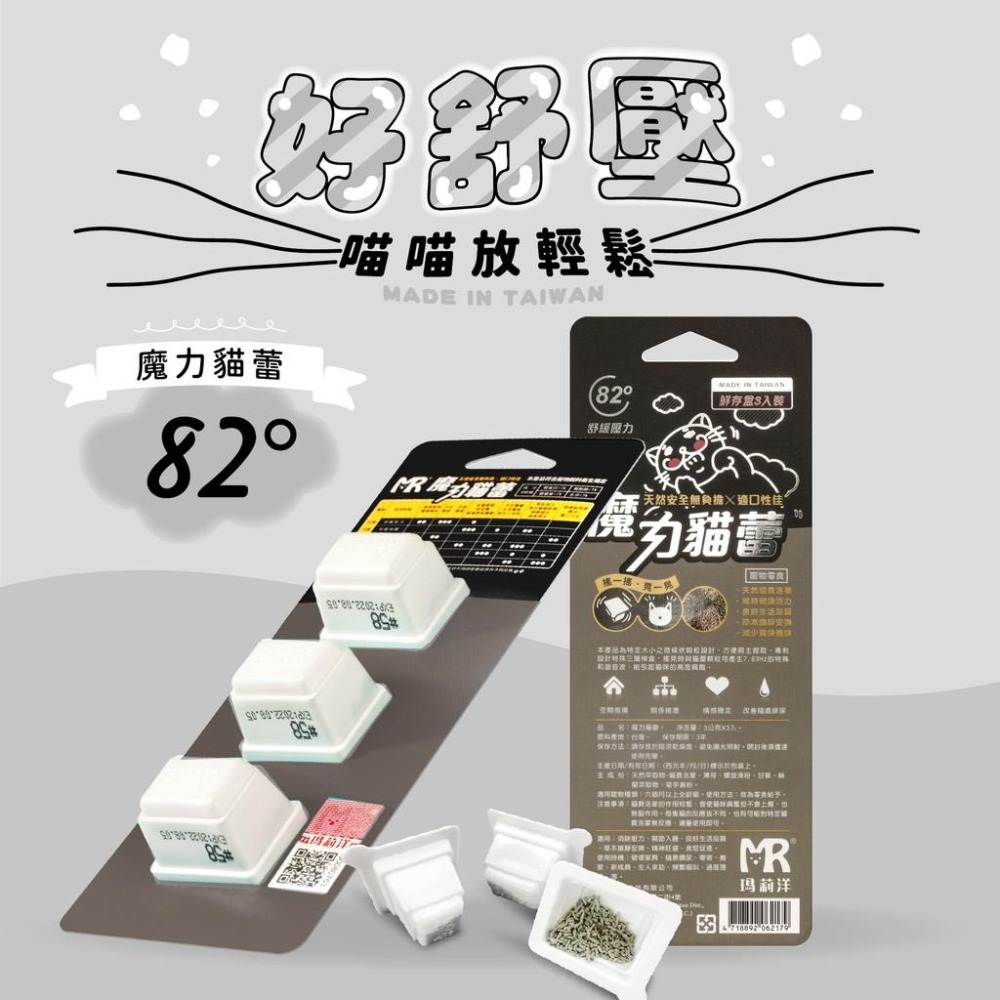 【魔力貓蕾-舒緩壓力82° ⁞ 貓咪互動性機能零食×喵喵放輕鬆×草本貓咪費洛蒙】 「對環境不熟悉、長時間處於不安的狀態、個性較為膽小警戒容易受驚嚇、害怕、不親人,感受到風吹草動便會躲起來戒備!魔力貓蕾-舒壓82°,安撫害羞內向貓貓!」 ♦ 產品介紹 Product Description ♦ 貓蕾是草本的貓咪費洛蒙,費洛蒙又稱『信息素』,可以傳遞無形的訊息給貓咪,飼主可依照貓咪的行為表現,選定所需度數貓蕾使用,作為與貓咪溝通的橋樑,幫助貓咪減輕壓力、安撫情緒、適應新環境以及空間指導。 **若在習慣的環境也能當作零食或玩具讓貓咪感到愉悅** ♦ 使用時機 When to Use ♦ ⦁ 當你的腦海中還停留上次搭高鐵,你家貓貓尖叫讓車廂空氣瞬間凝結時 ⦁當你知道你將要進行的動作會讓貓貓感到壓力山大時 ⦁ 以下時機皆適用:新成員加入、適應新環境、看醫生、美容洗澎澎、外出住宿、培養感情、任何時刻… ♦ 使用方法 Instruction ♦ ① 步驟一 ▸ 搖一搖、晃一晃,使貓蕾顆粒的沙沙摩擦聲引起貓貓的興趣! ② 步驟二 ▸ 當貓貓因聲響而注意力集中時,此刻撕開貓蕾的包裝~ ③ 步驟三 ▸ 拿著開封的貓蕾,利用『嗅覺引導』的方式,讓貓貓跟著貓蕾走進指定空間,或做出指定動作!(Ex:當貓貓不敢進籠,即可利用『嗅覺引導』讓貓貓進入籠中) ④ 步驟四 ▸ 完成後獎勵一下貓貓吧!選定好位置後(Ex:地上、床上、主人腿上…)就可以撒下貓蕾讓牠大快朵頤囉~ ♦ 商品資訊 Product information ♦ ⦁ 主要成分 | 天然萃取物-貓費洛蒙、薄荷、螺旋藻粉、甘草、絲蘭萃取物、菊芋澱粉 ⦁ 適用對象 | 六個月以上全齡貓 ⦁ 產地 | 100%臺灣生產製造(⟡由雲林有機農場種植⟡) ⦁ 淨含量 | 一卡三盒入(每一小盒3g),共9g ⦁ 保存方法 | 請存放於陰涼乾燥處,避免陽光照射,開封後請儘速使用完畢 ♦ 詳細閱讀 ♦ ※魔力貓蕾全系列六款的氣味皆不盡相同,只有貓貓知道自己最愛哪種氣味! ※當進行引導動作時,如:引導進籠、介紹新成員、防止破壞等,皆需要飼主有耐心且長時間的引導,魔力貓蕾為從旁輔助、獎勵的產品。 ※每隻貓貓對於貓費洛蒙的反應皆不同,偶爾可能對特定貓費洛蒙無反應,請適量使用即可。 ※每位飼主提供給貓貓的飼養環境、空間條件皆不同,某些狀況下可能會造成魔力貓蕾的成效不彰,此時我們建議飼主先觀察貓咪的狀況或改善現狀,這樣才能真正地幫助到貓貓唷! ♦ 安心認證 ♦ *本產品通過 SGS 檢驗認證 *有機農場認證 *無農藥殘留檢測 *產品責任險三千萬 #魔力貓蕾 #瑪莉洋 #貓費洛蒙 #貓蕾 #82 #喵喵放輕鬆 #舒緩壓力 #天然草本 #互動零食 #貓零食