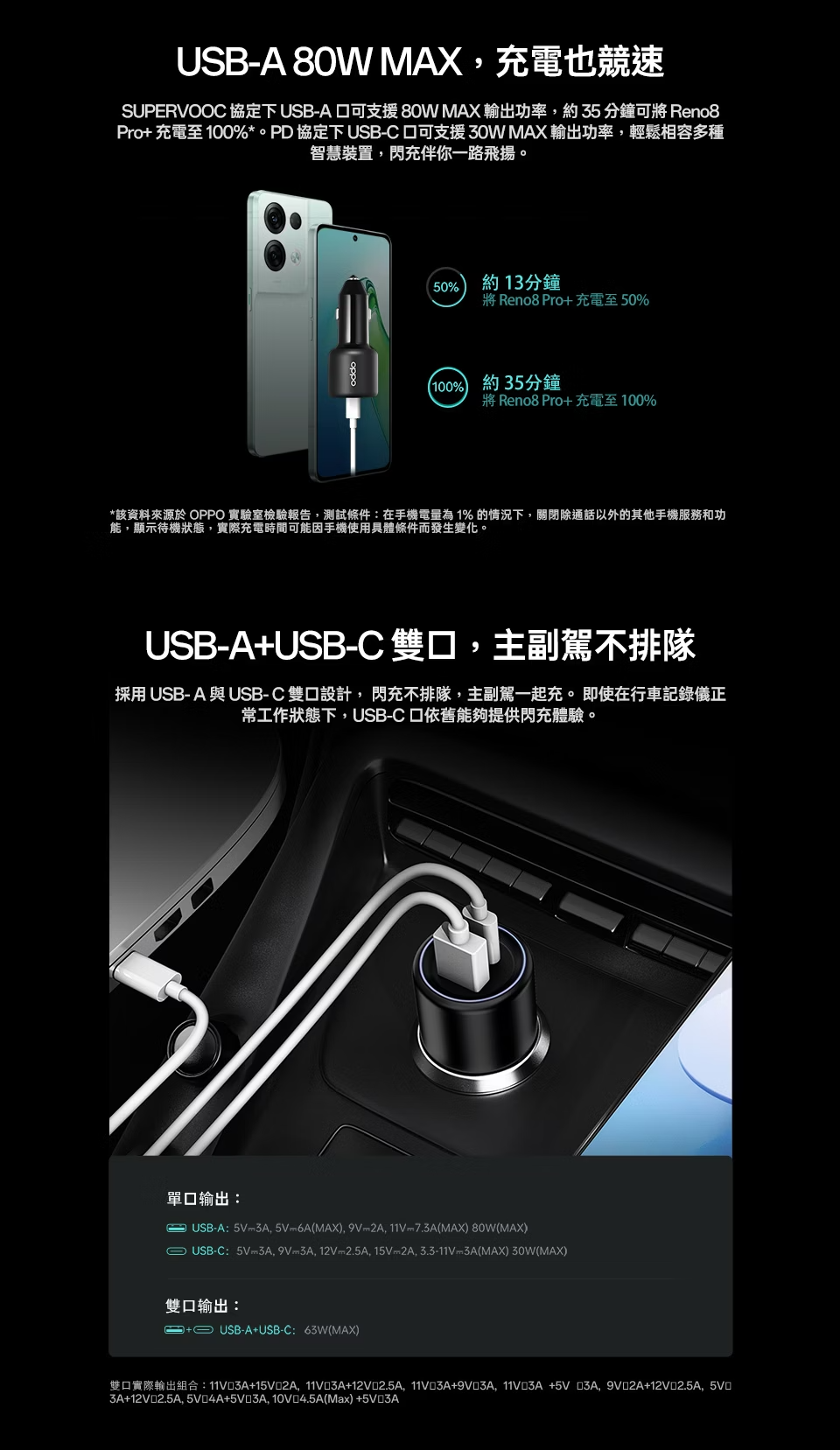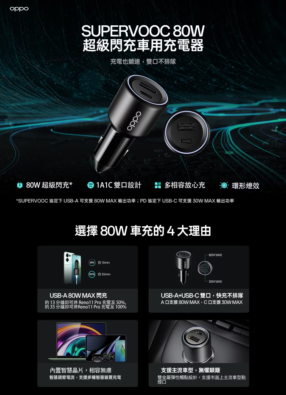 商品名稱:OPPO SUPERVOOC 80W 超級閃充車用充電器
