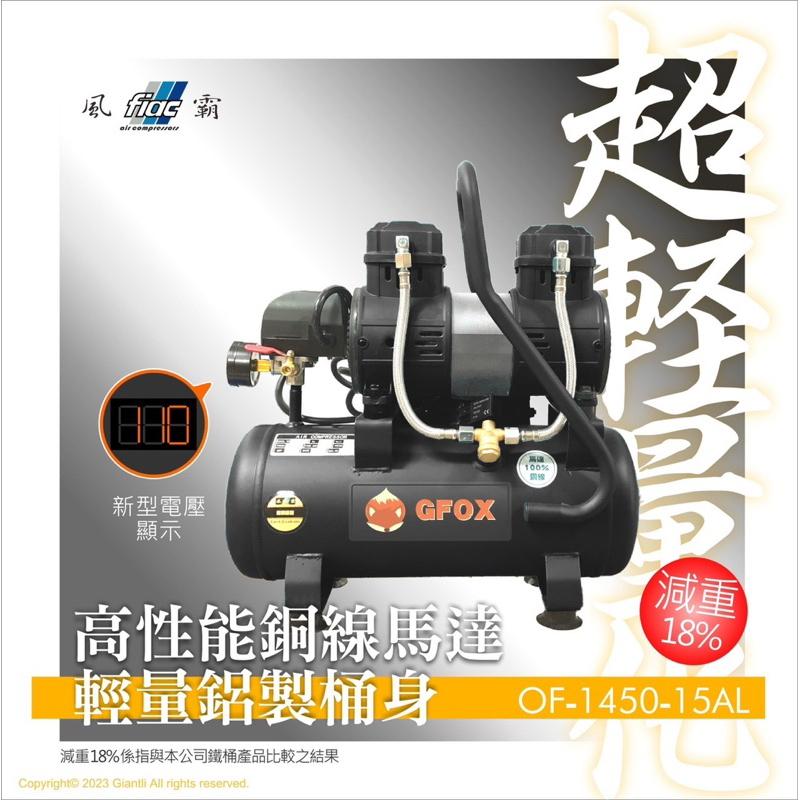 胖達人五金 贈風管+風槍 3.5HP 15L 30L超輕量 鋁合金 全銅線 風霸 GFOX 無油式 快速型 空壓機