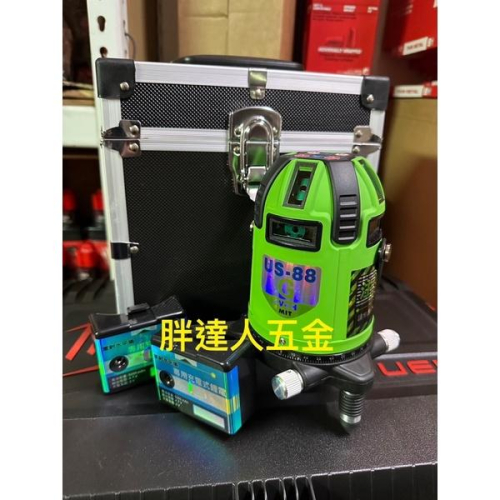 胖達人五金 德國技術 綠光雷射水平儀 附鋰電池 US-88 4垂直4水平8亮點 全自動電子式 US88
