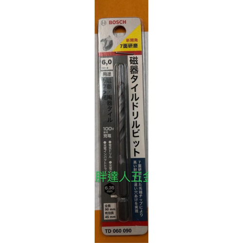 胖達人五金 博世 BOSCH 6.0x90mm 六角柄磁磚鑽頭