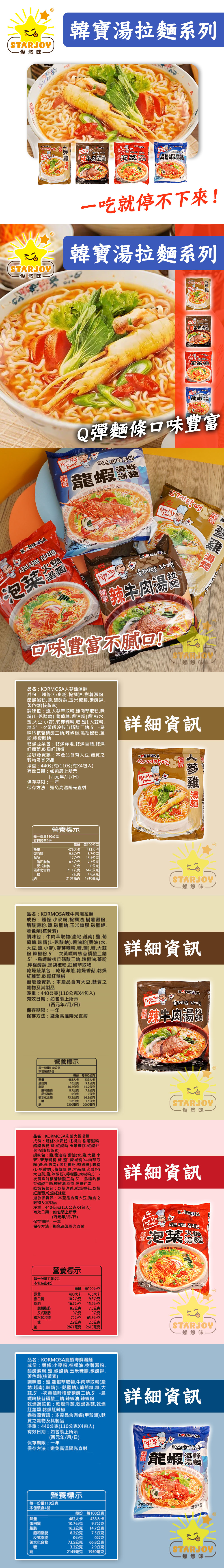 【燦悠味starjoy】韓寶 KORMOSA 辣牛肉湯拉麵 人蔘雞湯麵 泡菜火鍋湯麵 龍蝦海鮮湯麵