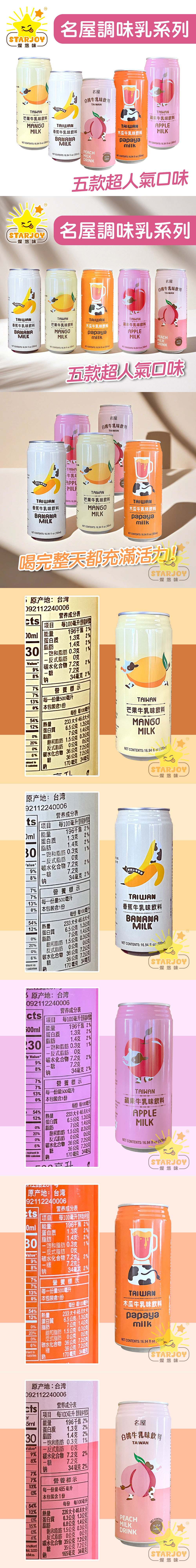 【燦悠味starjoy】名屋調味乳系列 蘋果牛乳 木瓜牛乳 白桃牛乳 香蕉牛乳 芒果牛乳