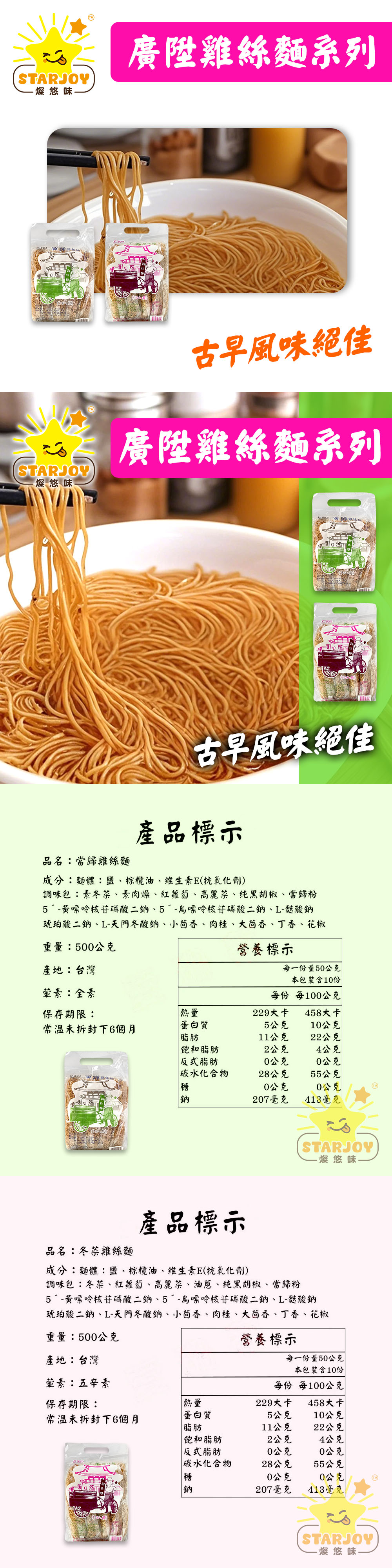 【燦悠味starjoy】廣陞雞絲麵 冬菜 當歸