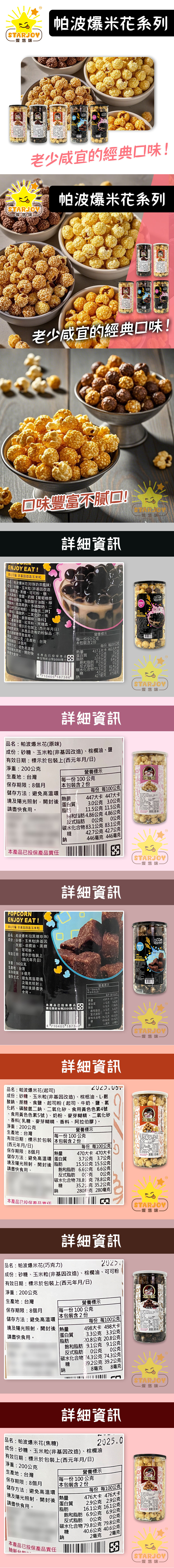 【燦悠味starjoy】帕波爺爺爆米花 珍珠奶茶 黑糖珍珠 起司 巧克力 焦糖