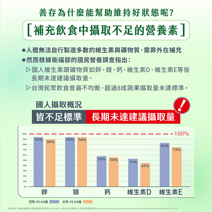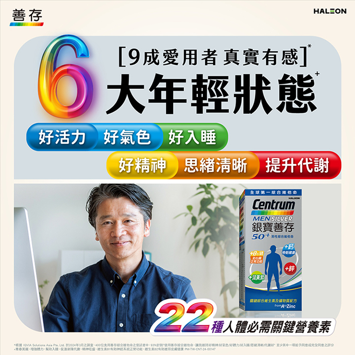 ▸ 針對成人男性營養需求,提供重點加強關鍵營養素