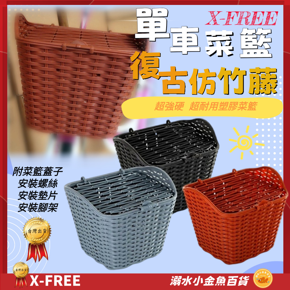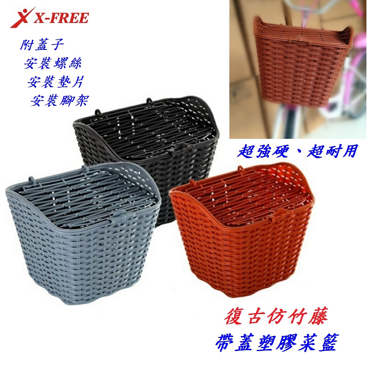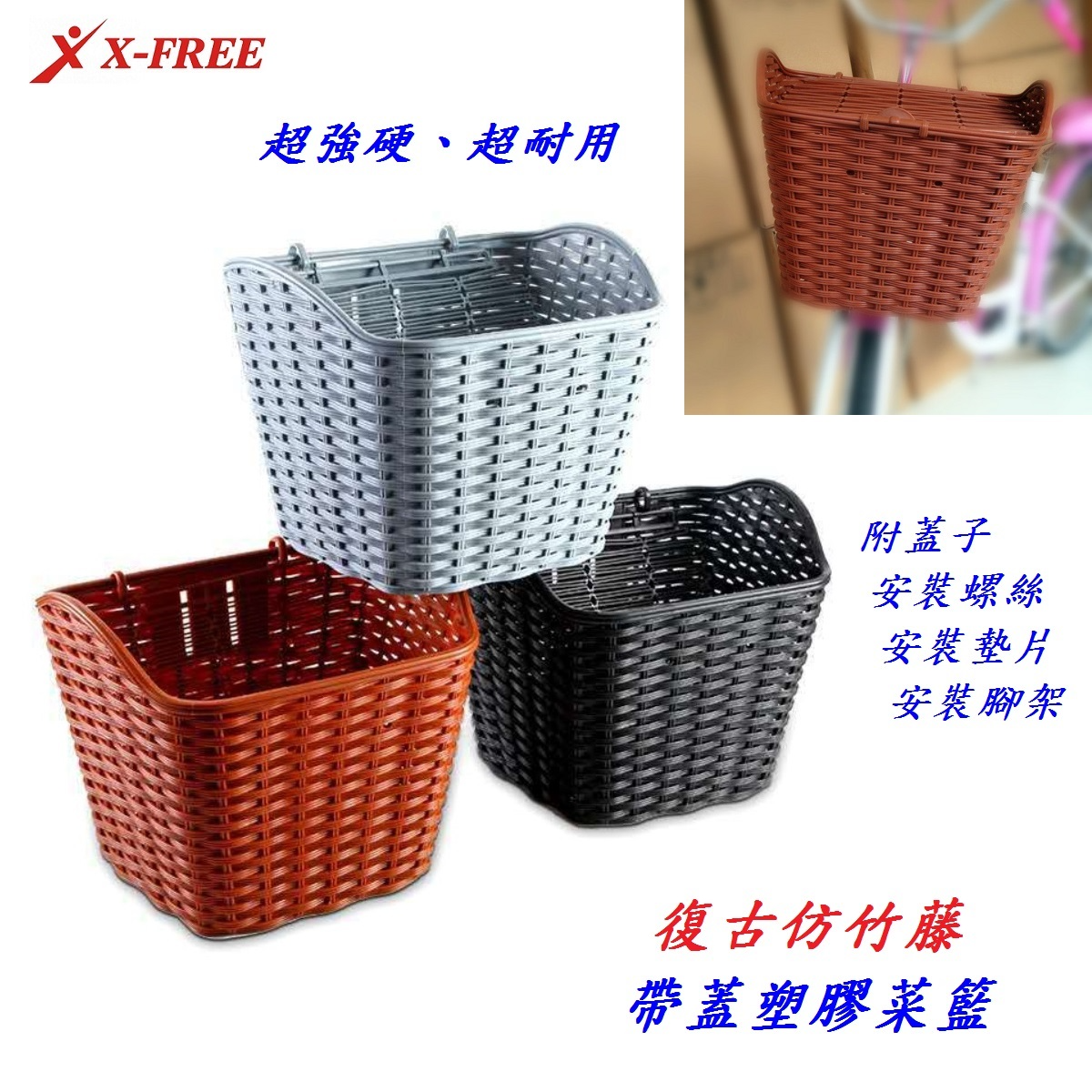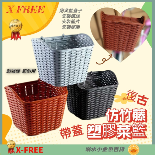 品名:X-FREE復古仿竹藤 帶蓋塑膠菜籃