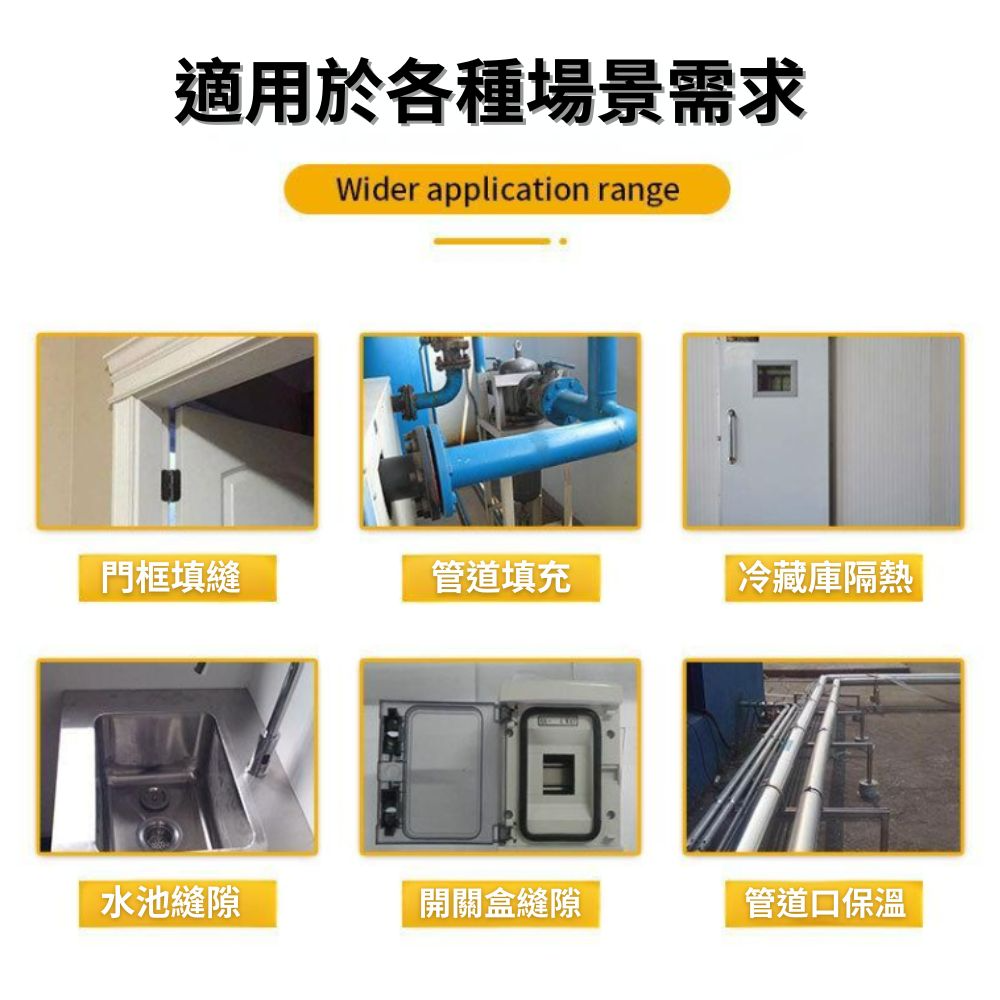 適用於填縫堵洞、過濾噪音、填補、防漏、吸音、密封、防蟲鼠、防漏水漏風