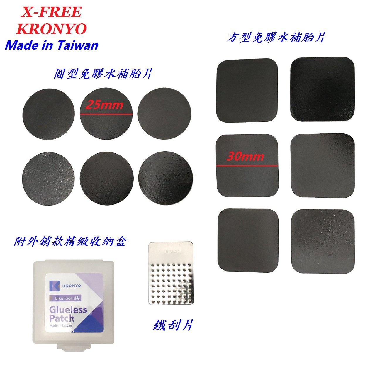 品名:台灣製造KRONYO【圓25mm】免膠水補胎組