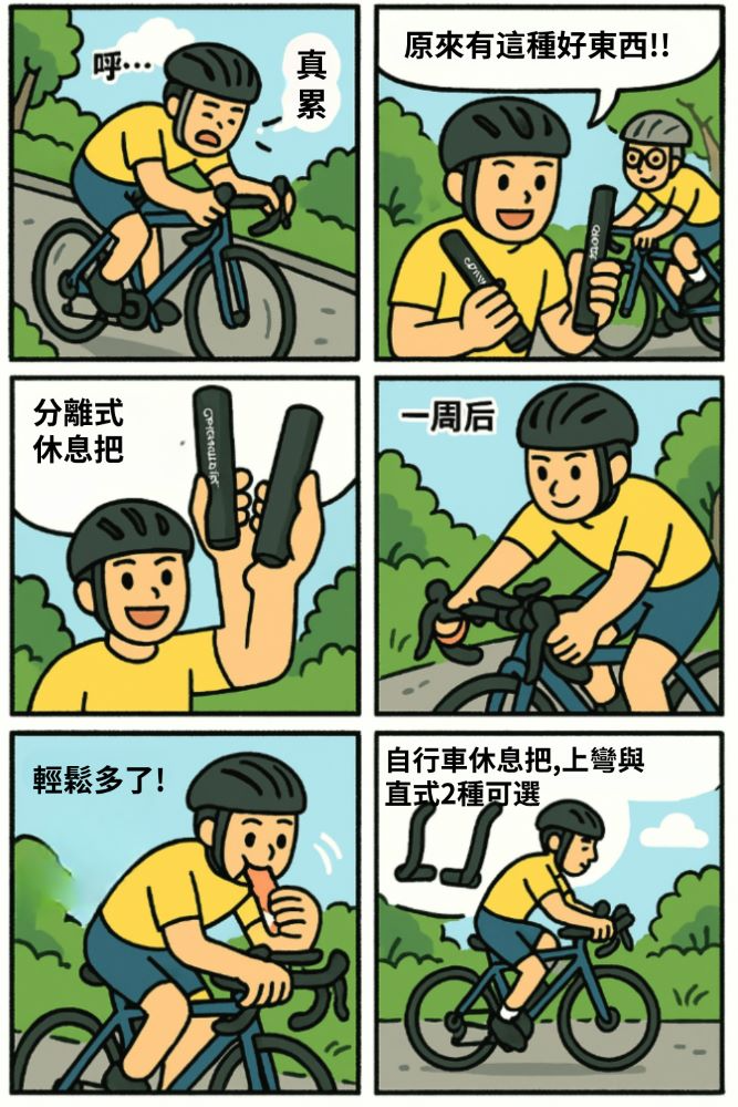 隔天阿哲立刻入手了【DRCKHROS 分離式休息把】,選了直式款,鋁合金肘托一靠,穩!