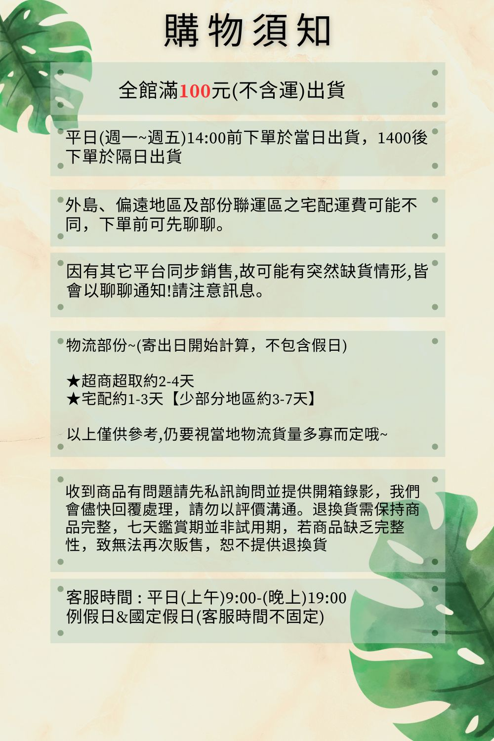 1、本賣場滿100元(不包含運費)~才有出貨喔~謝謝!