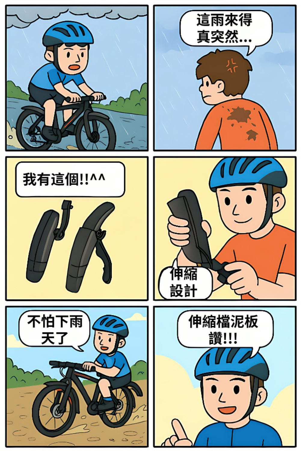 你也想騎得乾淨俐落?快裝上這款【前後一組伸縮檔泥板】,讓雨天不再是你的敵人!