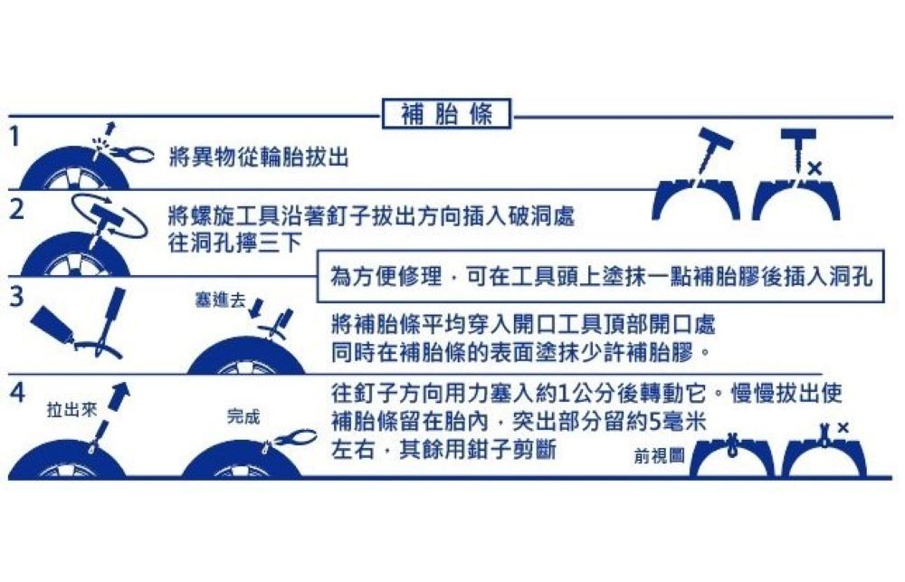 他霸氣抽出補胎條,「插一下、轉一圈、再壓一下──Everything’s OK!」💪