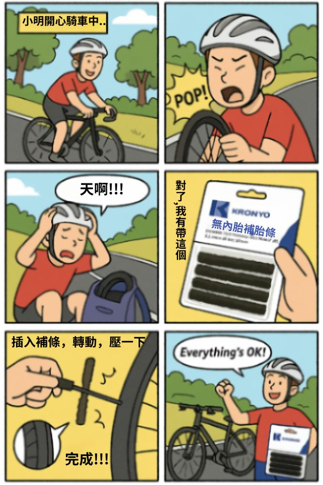 「是時候見識一下…KRONYO 無內胎補胎條的威力啦!(3.5mm粗版,帥哥專用)」