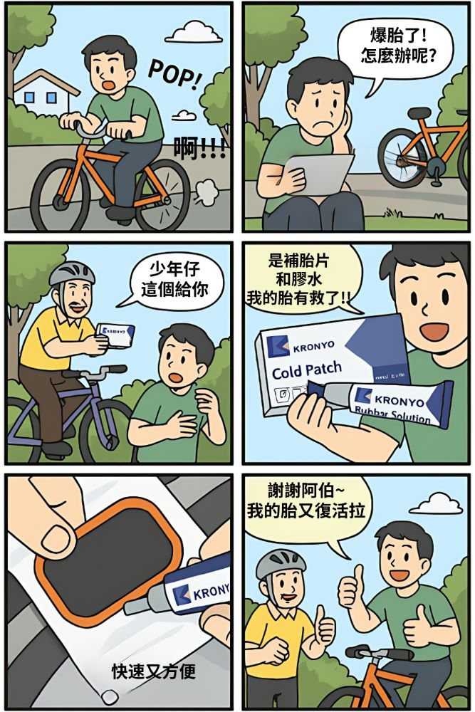 3️⃣ 忽然天降神盒!一位神秘阿伯塞給他一盒 KRONYO補胎片。