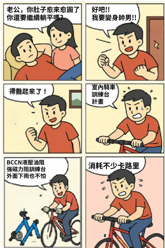 某天他看到「液壓油阻+強磁力訓練台」的廣告,心想:也許我該運動了!
