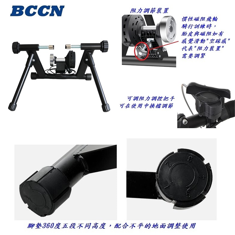 五段式阻力調整,模擬真實路感,搭配20"~22"車輪完美契合。