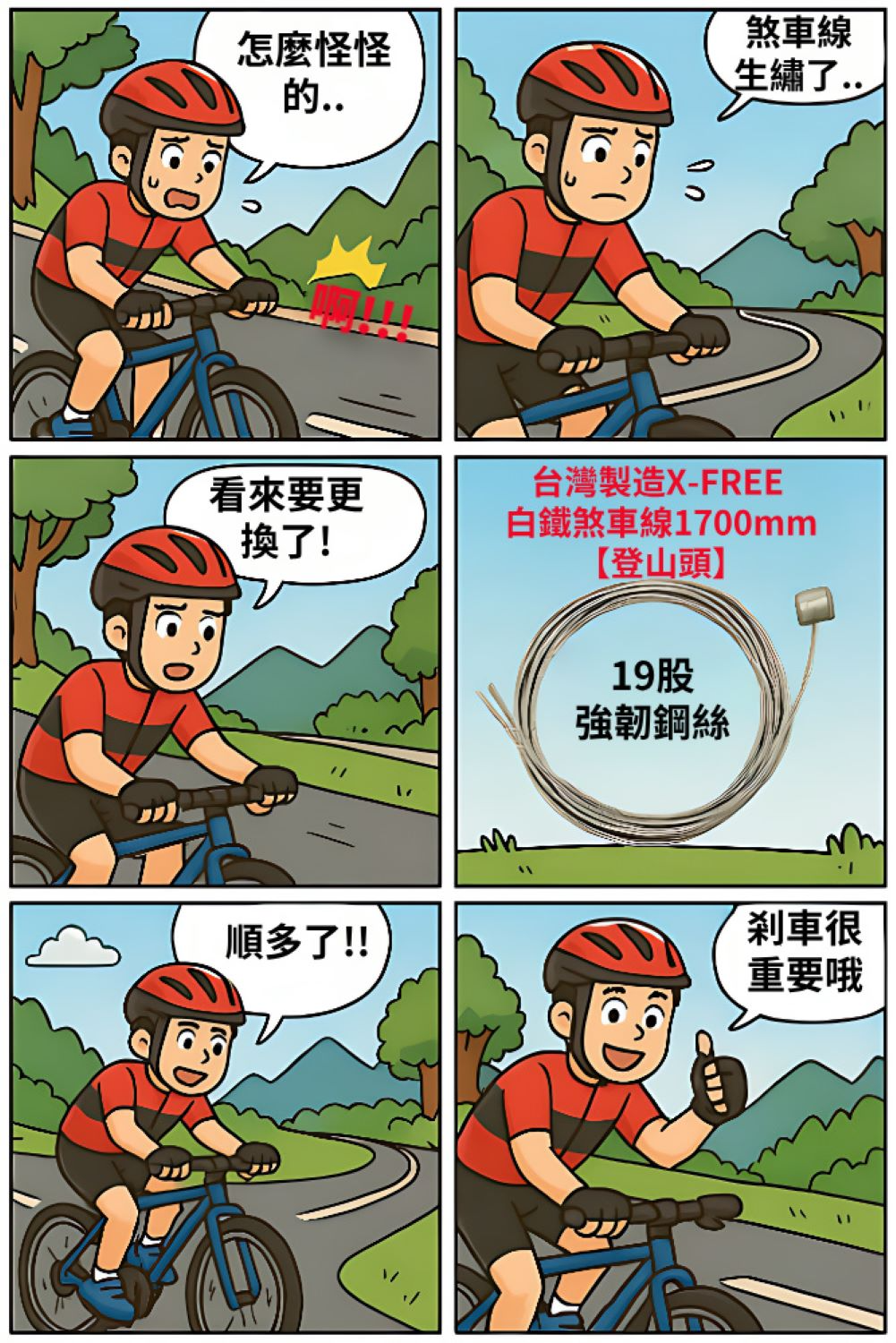 他換上【台灣製造X-FREE 白鐵煞車線】後,再也不擔心剎車不靈。