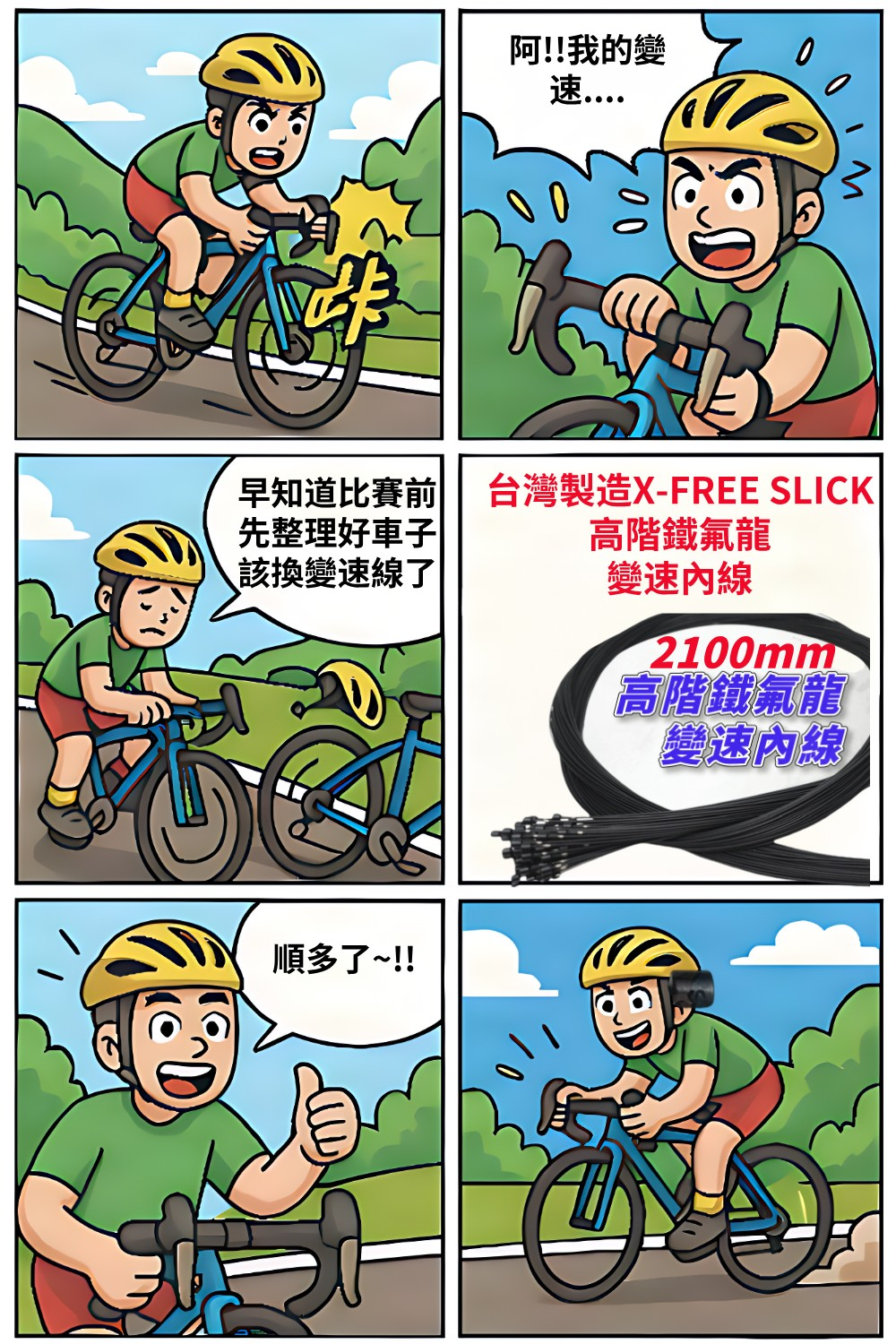 「如果早點換成 X-FREE SLICK 高階19股鐵氟龍變速內線,今天我就能奪冠了……」他懊悔地想。