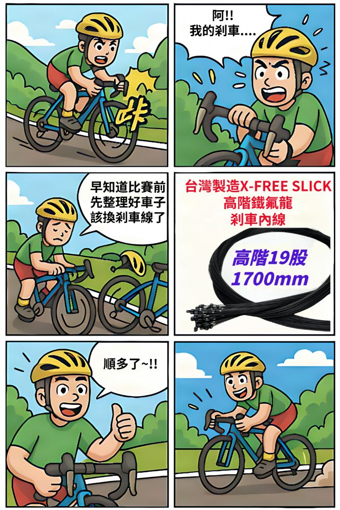 他換上【台灣製造X-FREE SLICK高階鐵氟龍剎車內線】後,再也不擔心剎車不靈。