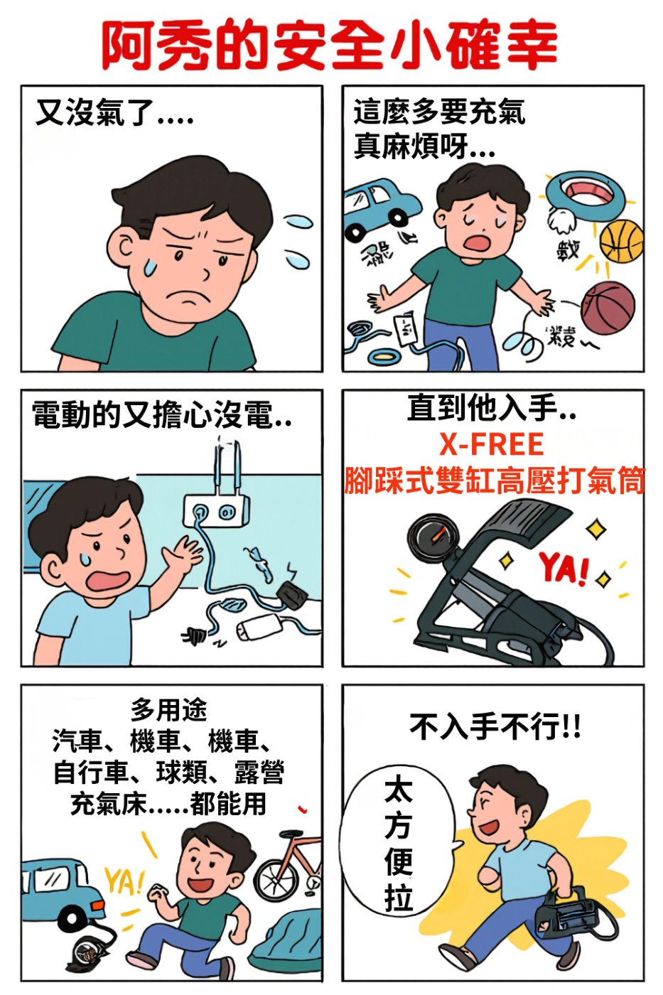 直到他入手 【X-FREE腳踩式雙缸高壓打氣筒】。