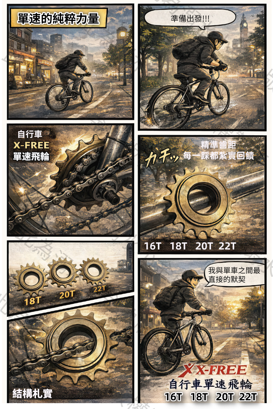 X-FREE 單速飛輪,精準齒距,每一踩都紮實回饋。